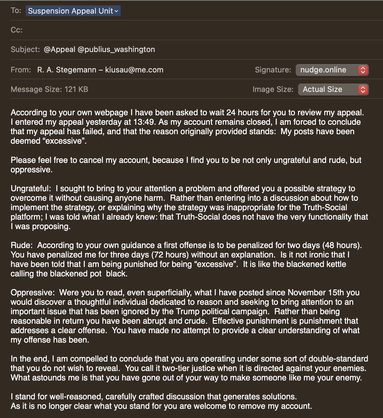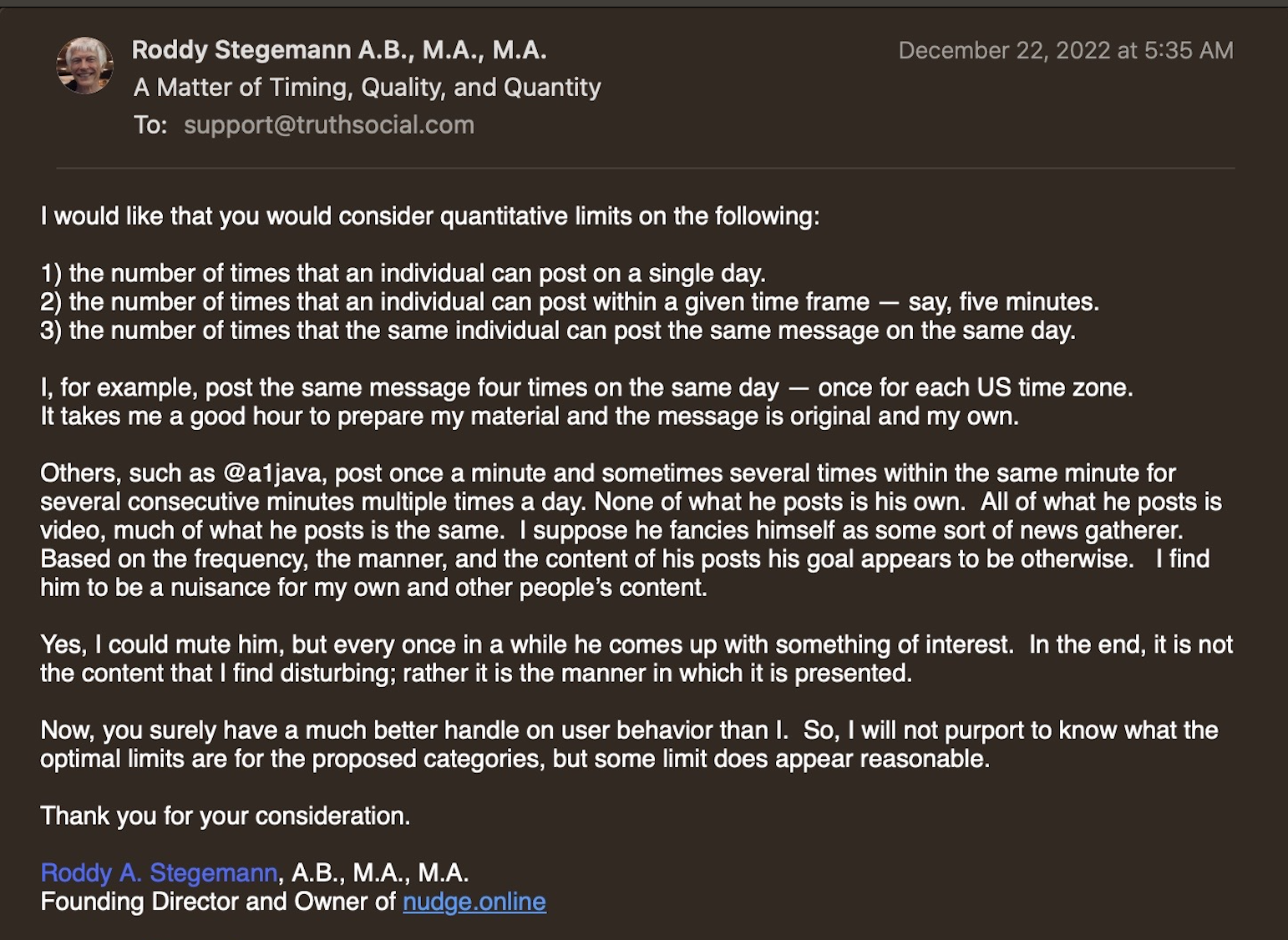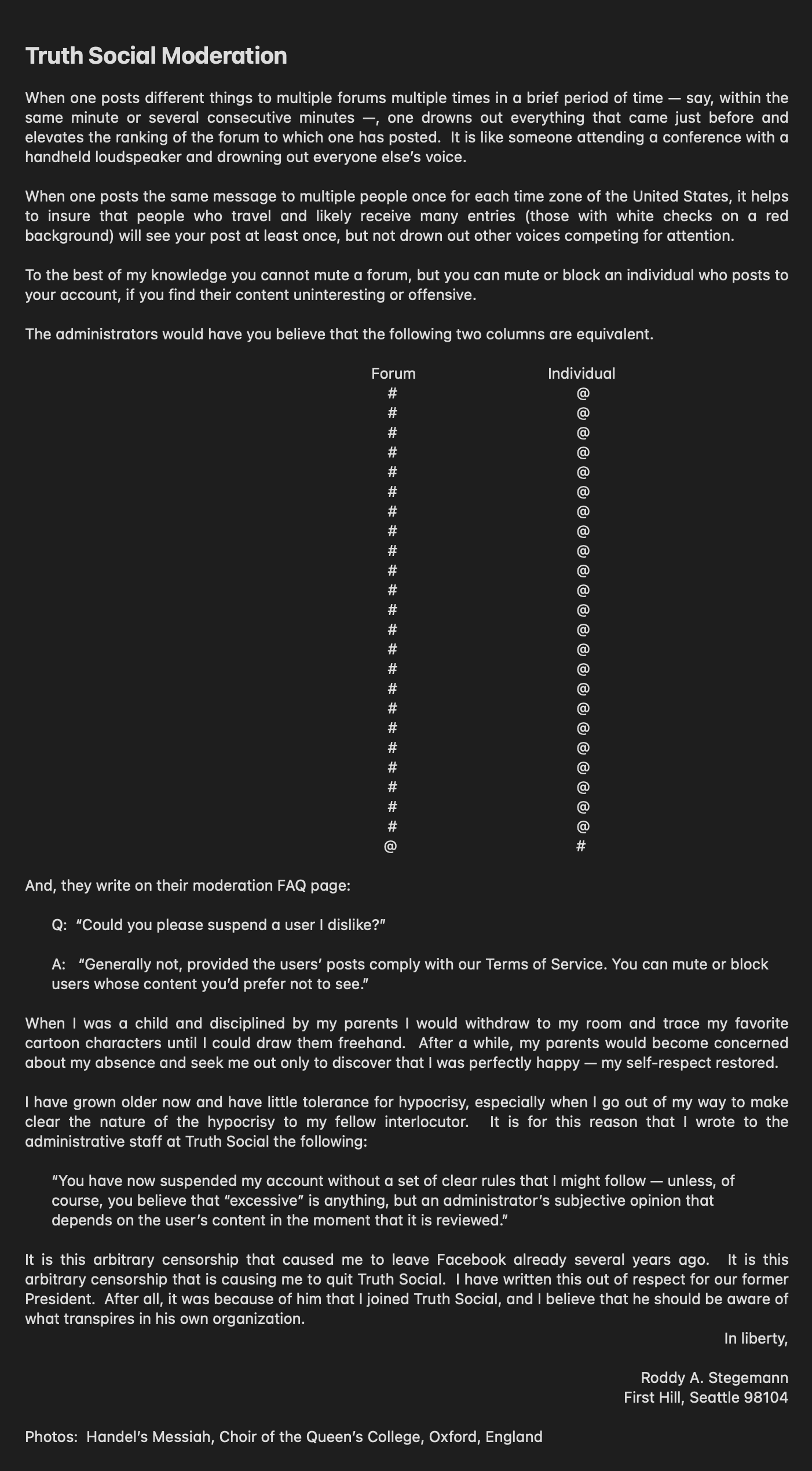 What started well on Twitter did not seem to be going anywhere. My account had been throttled. This is when I learned about Substack, a blog site used by Glen Greenwald, to avoid Twitter censorship. So, this time, rather than merely pausing further input on Twitter, I deleted my entire account. @kiusau suddenly disappeared, and aveverum.substack.com was born.