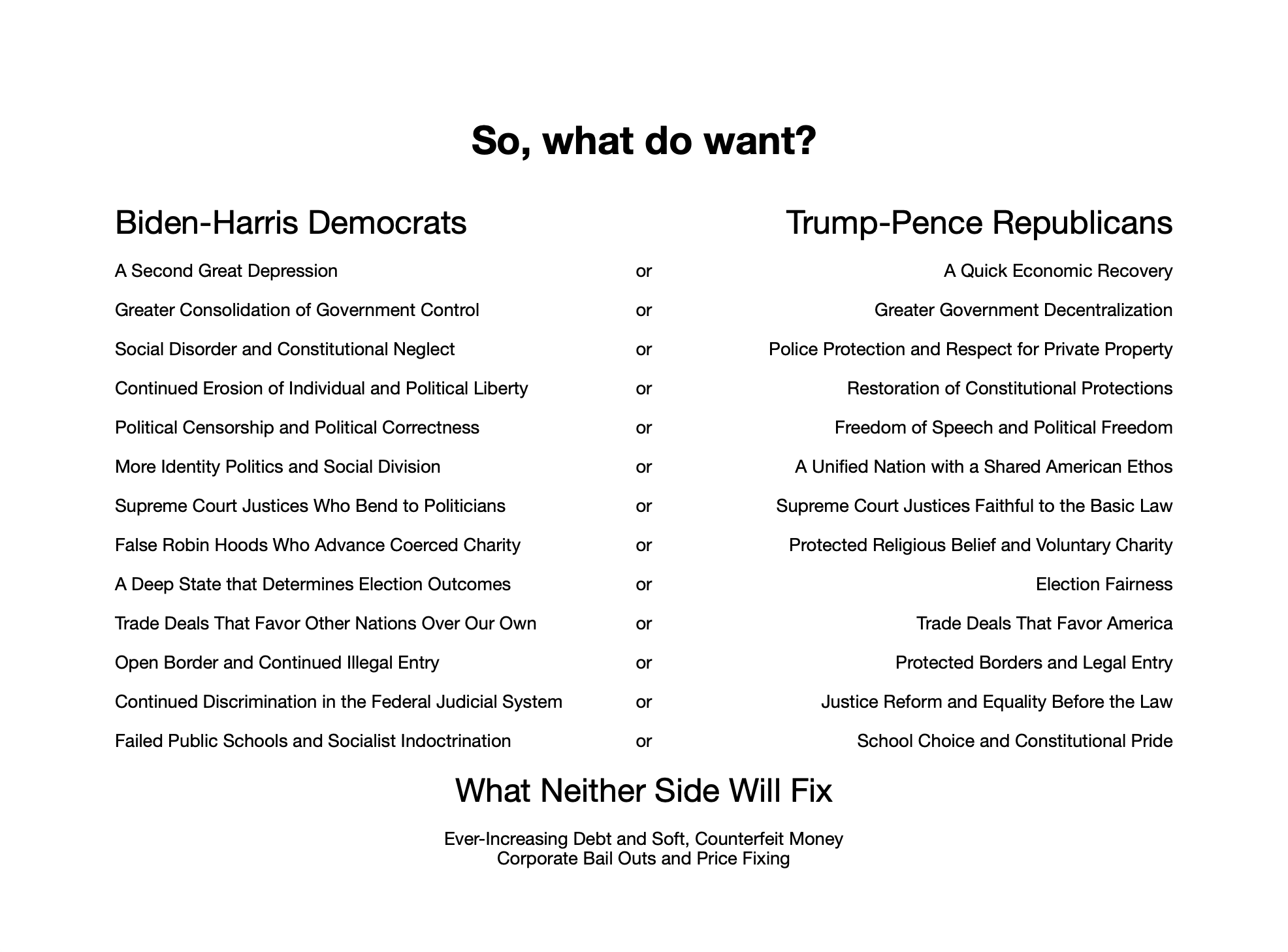 The notion of a free-will and individual responsibility had been tossed. Our social order was suspect. And, the American philosophy of governance that had served us so well for so long was dead and should be scrapped in favor of the lofty promises of a newborn socialist order in which we would own nothing and be happy.