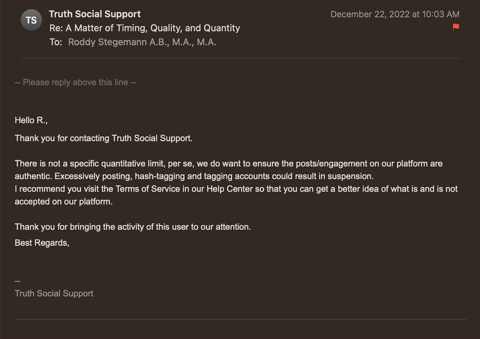 As the name of the officer was included in the email address, I was compelled to conclude that he was too busy to be bothered by common email etiquette, did not wish to be embarrassed by the conflicting accounts of what happened, or more simply believed that he had completed his job and did not wish to be bothered any further. No matter, I did not know how to proceed, so I sent one last email asking him how I should follow up. I was hoping that this would give him an opportunity to be rid of me while providing the acknowledgment of receipt that I desired. Still, no response.