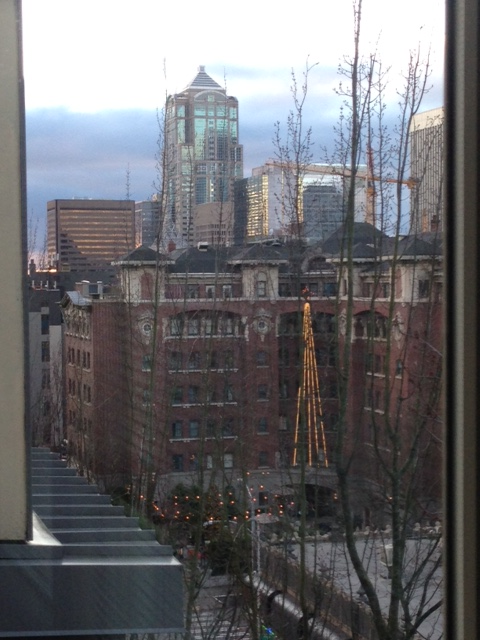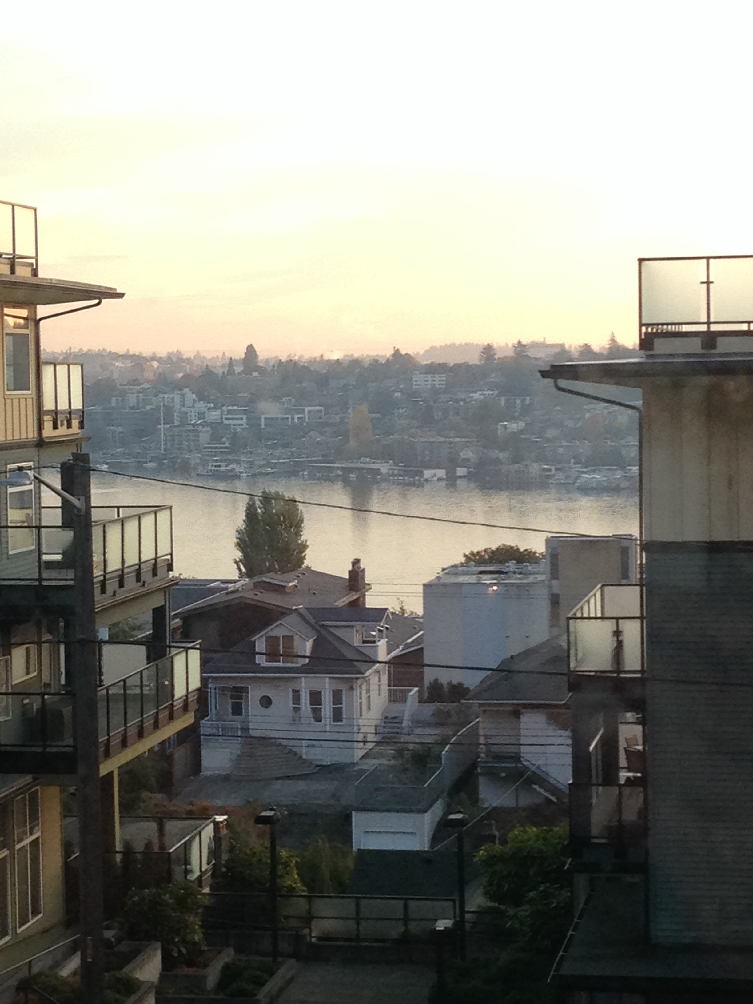 Ironically, I have returned to First Hill where I am now resident atop the hill rather than on its downward, downtown slope. I now occupy a one-bedroom apartment rather than a studio with a large closet, and I now enjoy a much better view on the sixth- and top-floor overlooking Madison Avenue. Previously I occupied a third-floor, second from the top, overlooking the alley-way behind the Sorrento Hotel. Although I have sacrificed much in name -- Cabrini Senior Housing as opposed to Paul Revere Apartments --, I am now paying only 15% of my previous rent with a rent-free community space that can be reserved for large social gatherings.