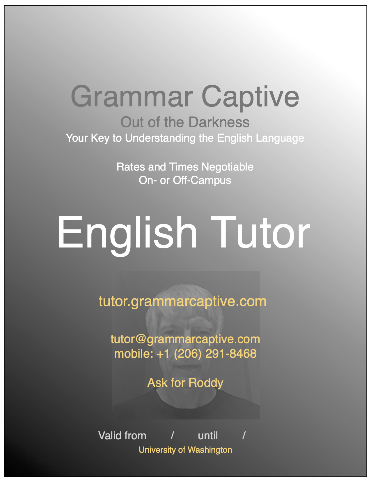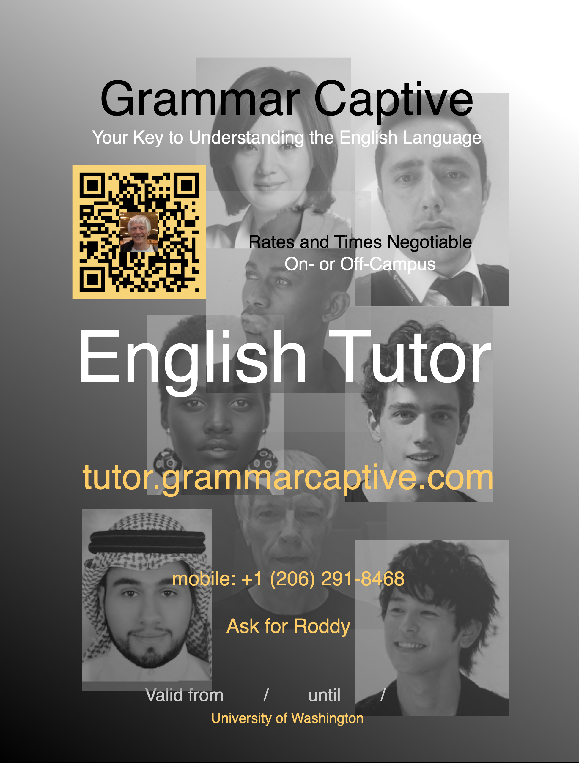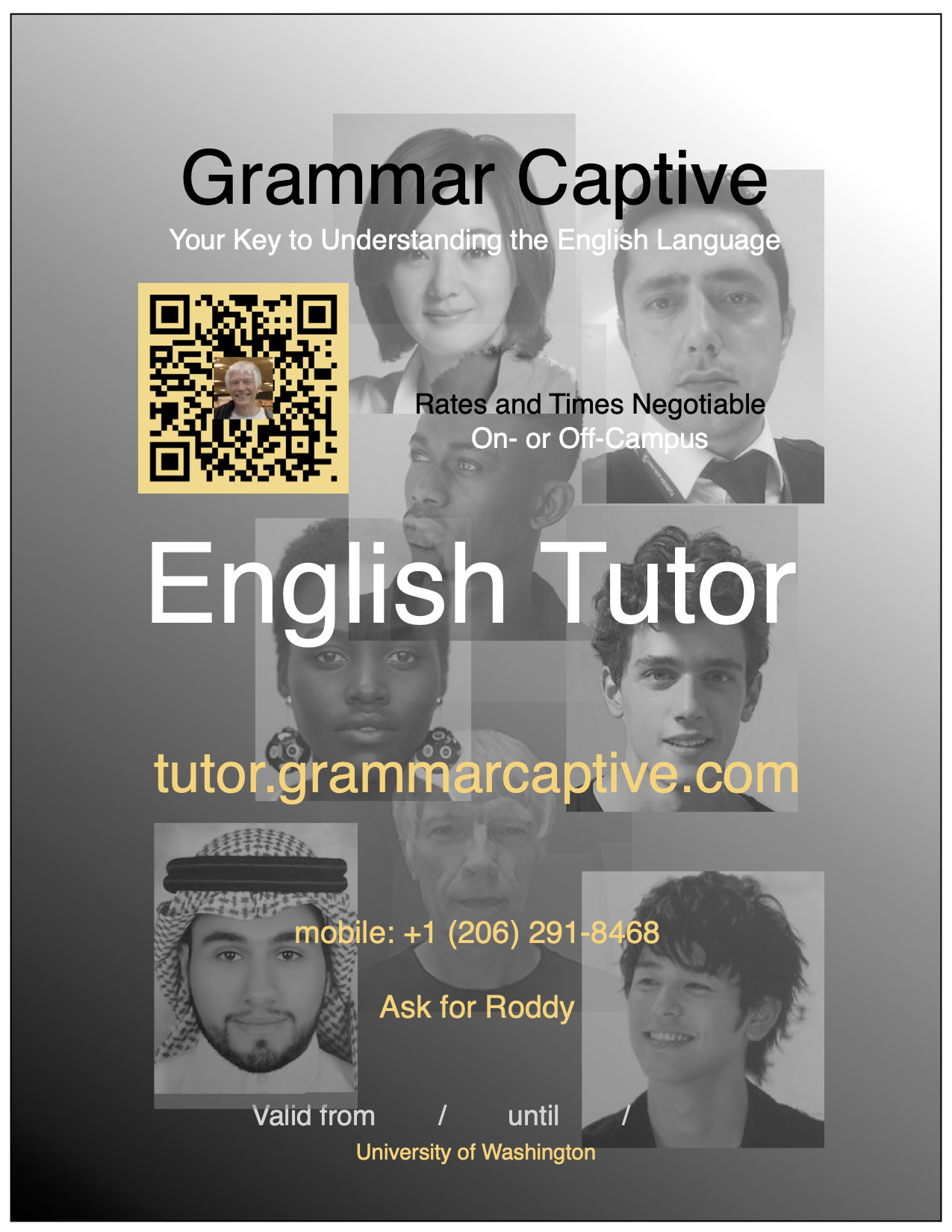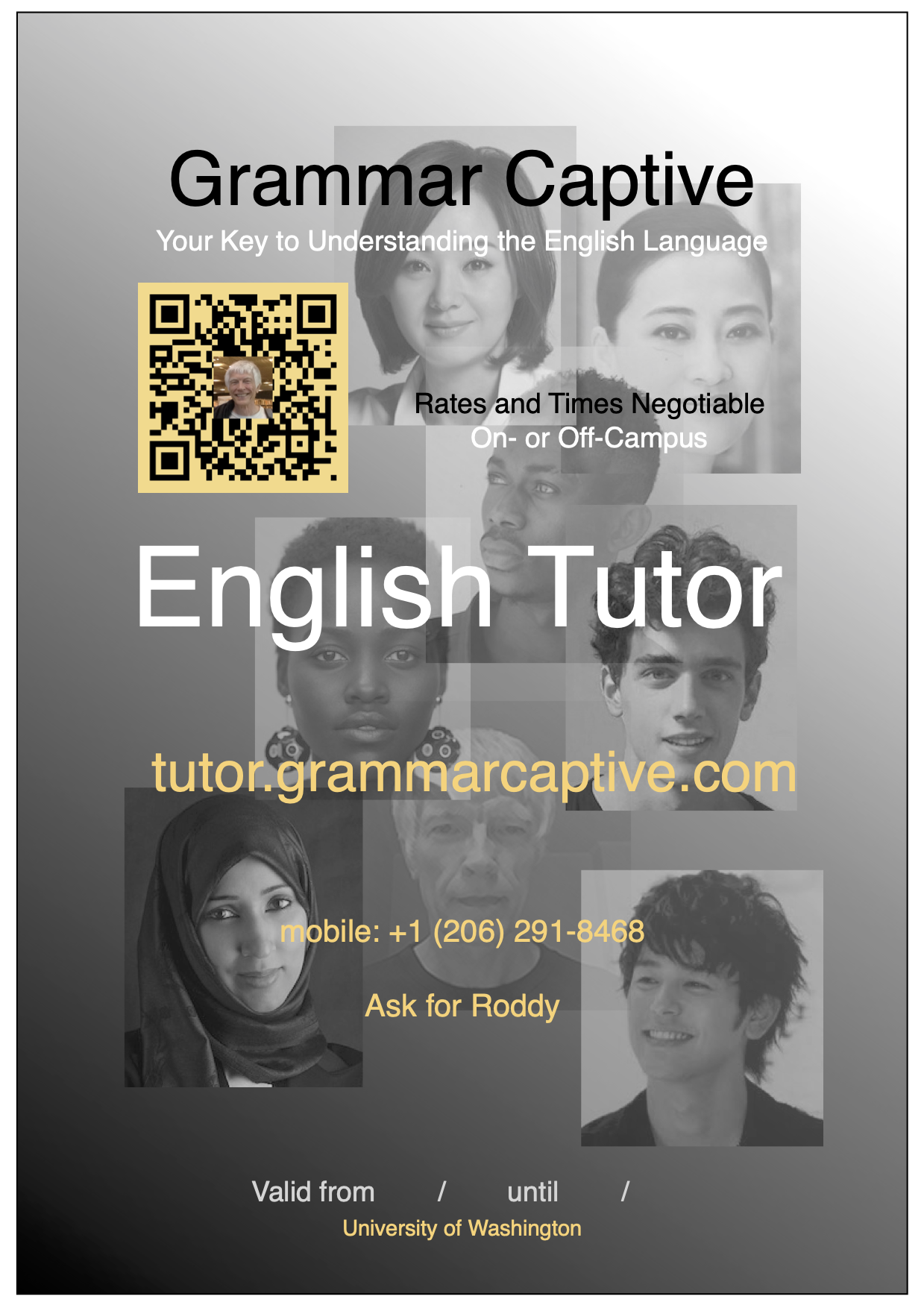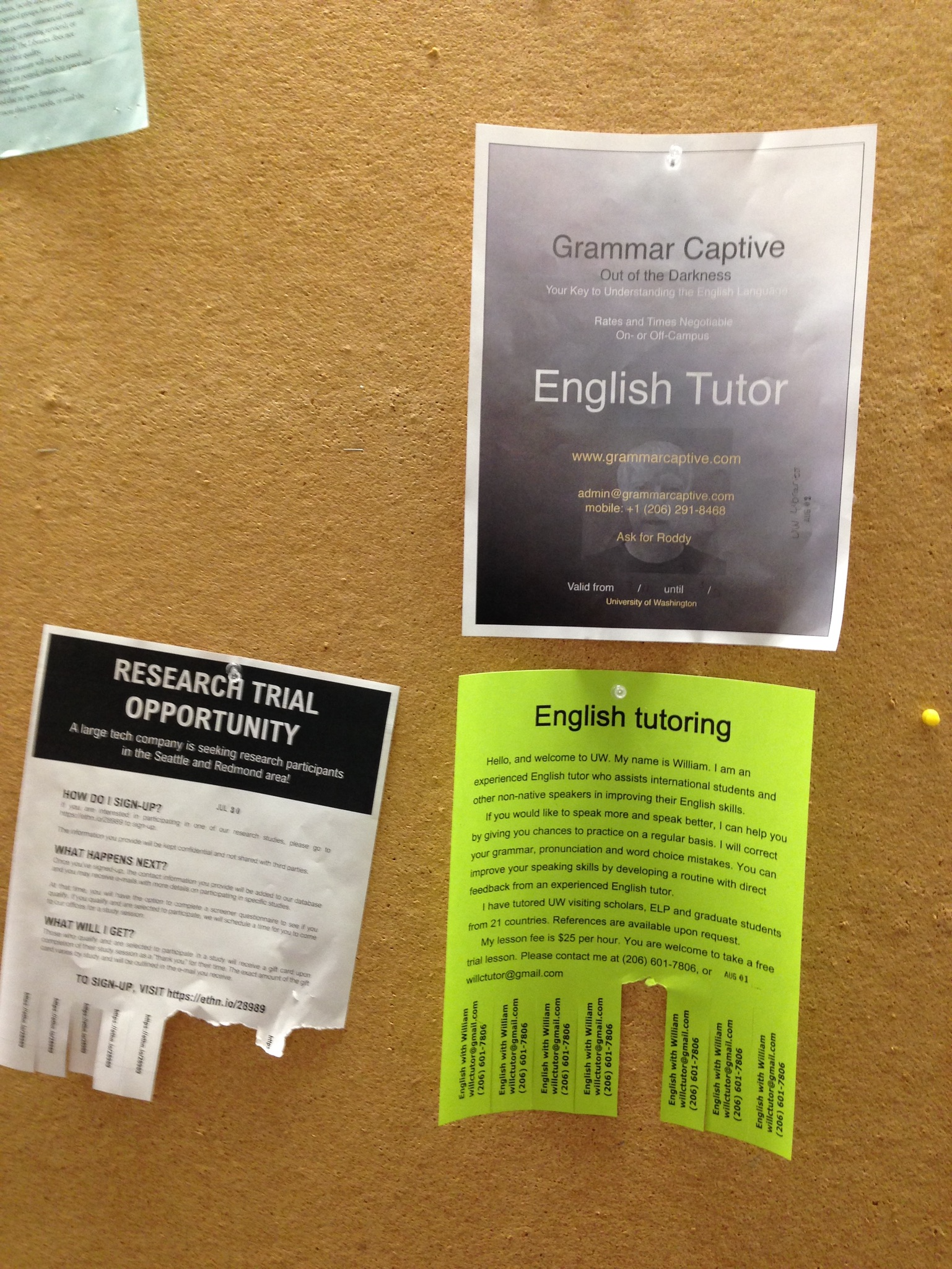 Firstly, I advertised my tutoring services in the basement of Savery Hall and elsewhere in and around the University of Washington for nearly all of last year. Not even a nibble. This effort included an original flier posted in three buildings on every publicly available bulletin board on every floor.
