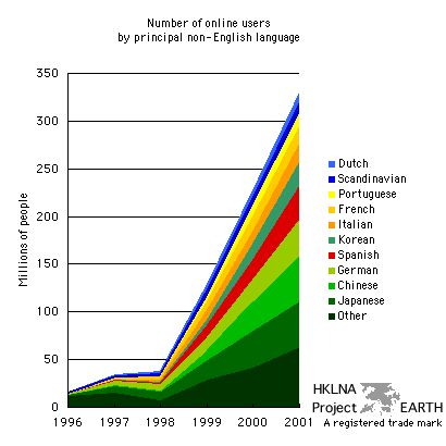The Internet - Growth of Online Population by Language (1996 - 2001)