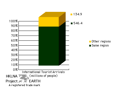 Graph 40b Intraregional and Interregional Comparison Less than 20% of all world tourism takes place across regions. The rest takes place within one's own region. The reasons for this are likely numerous including greater travel time, travel cost, and travel risk. |